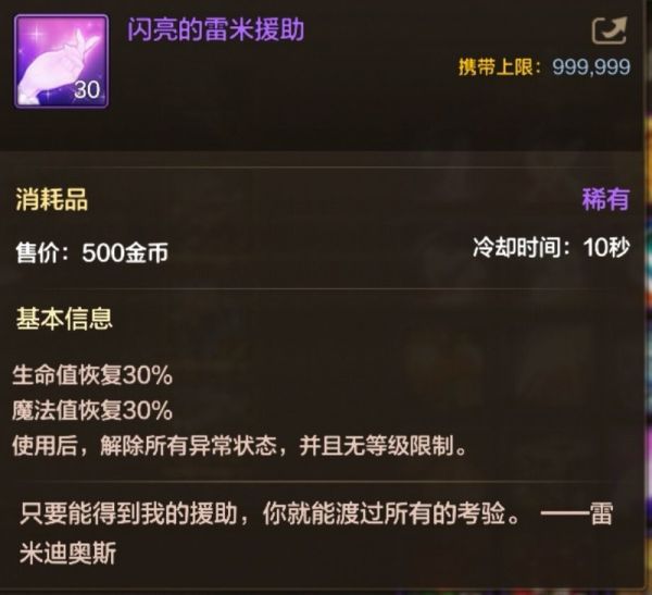 本期战令新增闪亮的雷米援助功能,可恢复30%生命与魔法值并解除所有异常状态,是新世界领主不可或缺的强力支援。