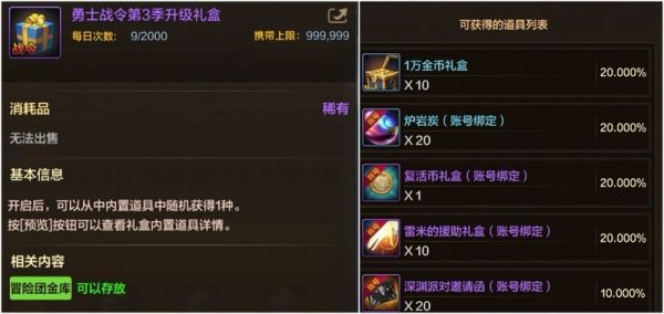 还有金币礼盒、黄金、公会贡献币、宠物秘能之牙、精髓自选礼盒等道具,非常值得获取!