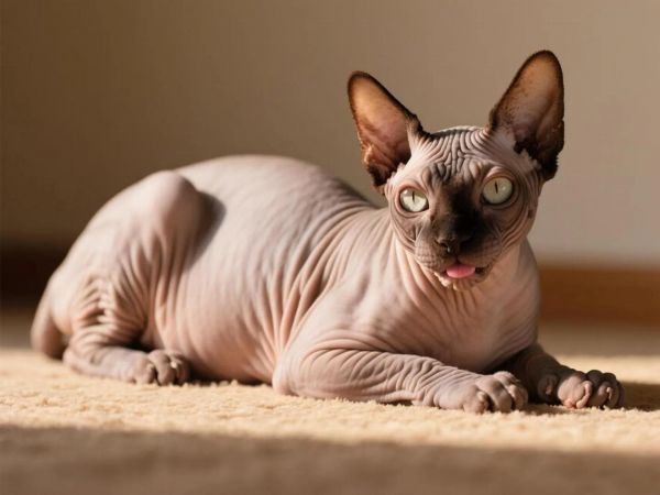 特点:全身无毛如“外星来客”,皮肤布满皱纹,体温比普通猫高4℃,需穿衣服保暖。性格活泼好动,对主人极度忠诚,但皮肤易晒伤、油脂分泌旺盛,需每日擦拭。