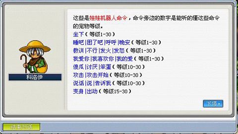 罗伯作为有点小智商的机器宠,很喜欢自言自语哦!当你升级了、宠物消费的HP药水不足时、宠物消费的MP药水不足等情况时,罗伯会自动说话哟!是不是很贴心呀? :)