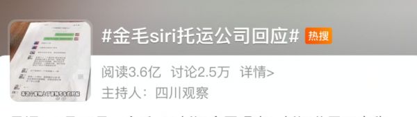 金毛Siri主人与托运公司和解,涉事公司致歉表示配合调查