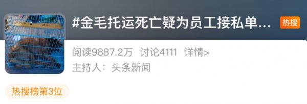 "空运变陆运"热死金毛犬 涉事公司:员工接私单已离职