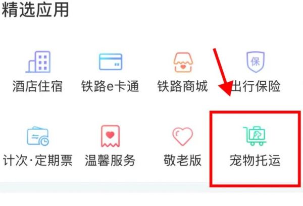 打开铁路12306App,找到“宠物托运”