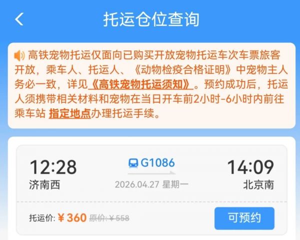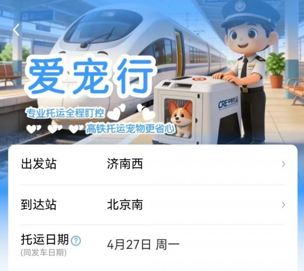 3只“毛孩子”坐高铁到济南西站 全国首趟高铁宠物托运列车来了