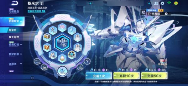 即日起-2026年1月4日,车手们前往寻宝-机甲珍宝,使用枢米尔专属源石/机甲源石(售价30钻石/个)进行充能获取,即有机会获得永久机甲赛车「枢米尔」及其他奖励!