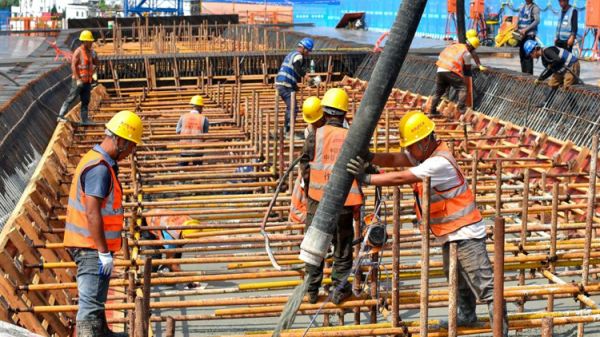 深圳机荷高速改扩建工程九围互通首块现浇梁浇筑现场(4月26日摄)。4月26日,中铁十一局承建的深圳机场至荷坳段高速公路(机荷高速)改扩建工程浇筑首块现浇梁。4月26日,中铁十一局承建的深圳机场至荷坳段高速公路(机荷高速)改扩建工程浇筑首块现浇梁。