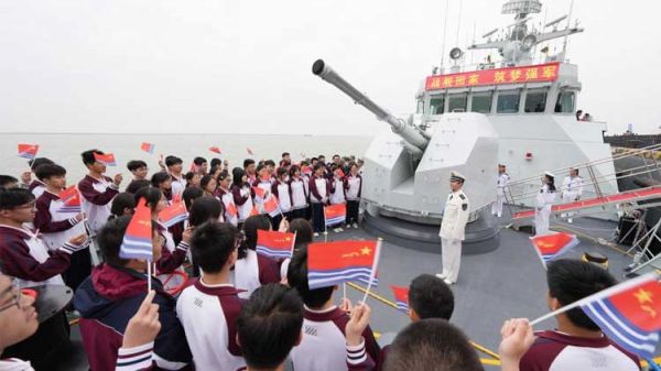4月21日,海军阜阳舰、千岛湖舰在上海北外滩国际客运中心码头面向公众开放(无人机照片)。新华社发(贾晓鹏 摄) 4月23日,北部战区海军某部在辽宁大连组织舰艇开放活动(视频截图)。