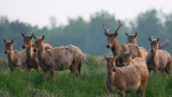 4月23日,一群麋鹿在湖北石首麋鹿国家级自然保护区内活动(无人机照片)。位于湖北天鹅洲长江故道边的石首麋鹿国家级自然保护区,是麋鹿繁衍生息的核心家园。位于湖北天鹅洲长江故道边的石首麋鹿国家级自然保护区,是麋鹿繁衍生息的核心家园。
