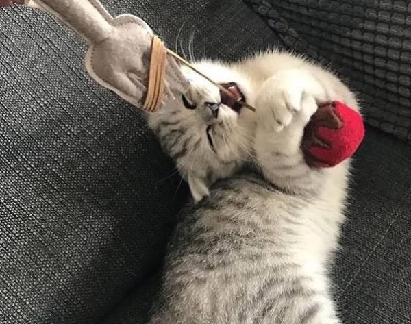 6.花点时间玩,用逗猫棒和激光笔玩20分钟。如果猫累了,它可能不会再去吃不同的食物。
