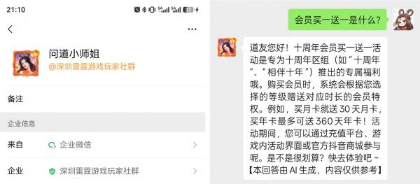 A:会员买一送一是【10周年】大服专享的回馈活动,预充值活动期间,在游戏内外各个渠道购买的位列仙班都能享受到此福利(包括官方充值平台、抖店、大服预约界面)。