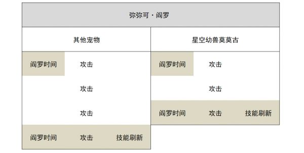 另外阎罗还有专属宠物——。这个宠物2星时可减少阎罗时间的启动1回合;3星时可给对象目标提升30%额外攻击。