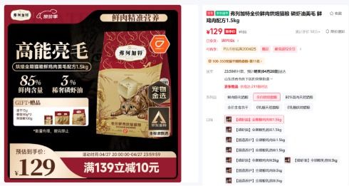 记者在电商平台发现,乖宝宠物旗下高端猫粮品牌“弗列加特”售价约86元/公斤,属行业高端价格带,但该品牌在消费端引发的投诉量持续处于高位。