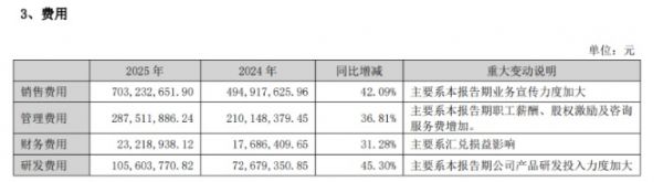 销售费用方面,三家企业均在2025年加大了市场推广力度,但投入规模差距极为悬殊。