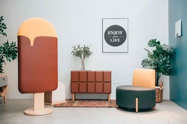 在强调实用性与美学的基础之上,使用时所拥有的心情状态也成为设计师探索的重要方向。用具象化的符号表达愉快的心情,这样的家居设计让人觉得快乐其实很简单。设计师蒙超有一组很可爱的食物主题家具,菠萝包圆凳、奶酪柜子、冰淇淋屏风等等,这些“色香味”俱全的家居产品可以任意地摆在房间的各个角落,不但发挥着不错的使用价值,而且看着就那么让人忍俊不禁。这些面向年轻消费者的童趣设计,给人一种轻松感和愉悦感,这才是家给人营造的氛围,而在这背后,也体现了设计师对于温度、色彩以及食物与人的关系等等主题的人文关照。
