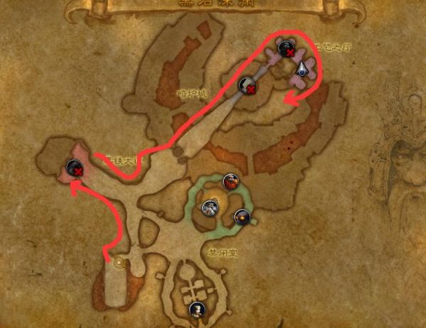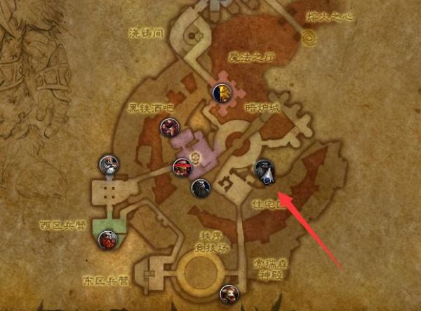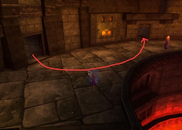 不认识路的可以这样刷,进本先左手边一直刷到这个boss这里,因为这一路黑铁矮人比较多,打完这个boss之后按箭头方向一路去二楼: