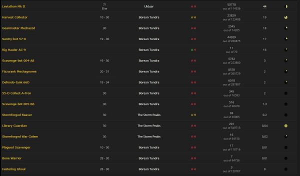 【基础零件】在北风苔原的各种收割机、伐木机等机器人掉落,掉落列表是30级以下都掉,但是很多人说只有10级小号才掉,升级就不掉了,所以大家最好锁等级再去刷。