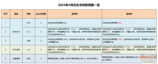 一、2024年4月化生寺经脉调整情况一览表