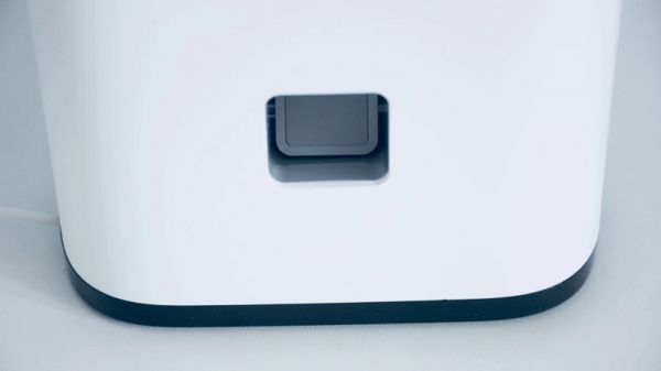 pawbby智能宠物零食机顶盖旋钮设计,单手能够轻松打开。打开后内侧边缘设计有SD卡卡槽,用来存储摄像头记录的画面。