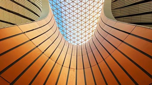 这两张照片拍摄于大兴国际机场的内顶,画面通过一些线条和几何形状,表达的主题就是一个纯粹的形式美感。