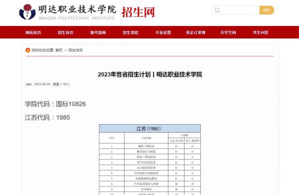 普通类招生计划明达职业技术学院2023年各省招生计划2023/6/29