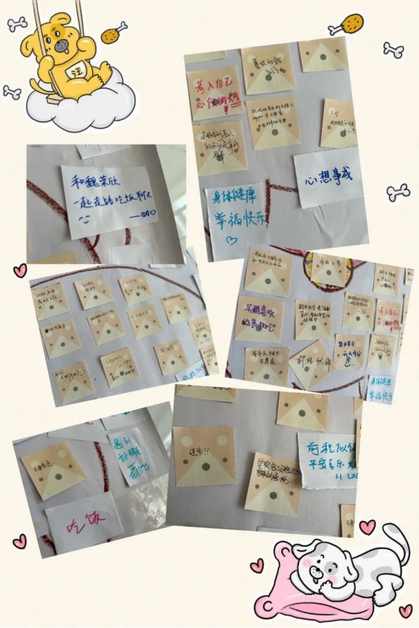“领养一只快乐小狗”心理健康主题活动为同学们提供了一个释放情感、减轻压力的平台,通过制作自己的“快乐小狗”,将内心的快乐与温暖传递出去。一只只可爱而独特的小狗承载着同学们快乐的回忆与善意的表达。通过领养他人的“快乐小狗”也让同学们感受到温暖与关怀,在轻松愉快的氛围中学会了关爱自己、认识自己。