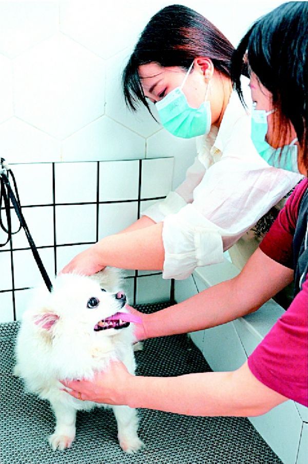 宠物医院里就诊室、治疗室、CT室、手术室、输液室一应俱全,笔者身穿围裙、面戴口罩、手持电动推子和剪刀等工具,在宠物美容师李欣的指导协助下,开始给一只博美犬“洗剪吹”。