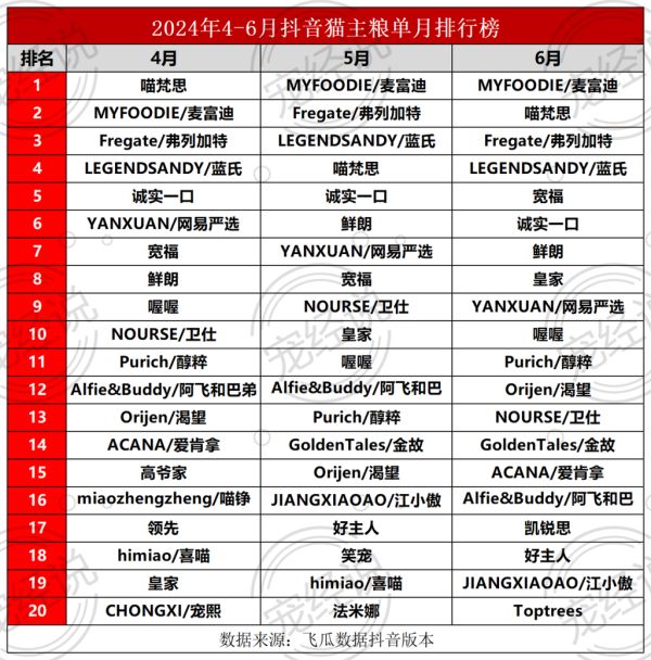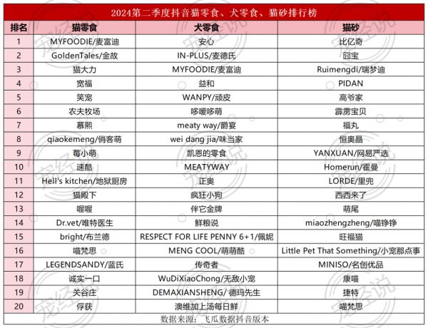 2024第二季度抖音宠物各品类排行榜,众多品牌出圈