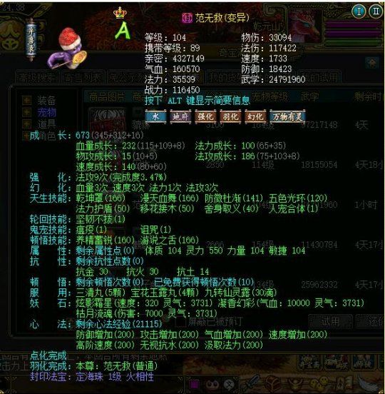 第三:电精。物攻强化13次,法功2次,幻化物攻3次。这些宠物都突破了常理强化啊!