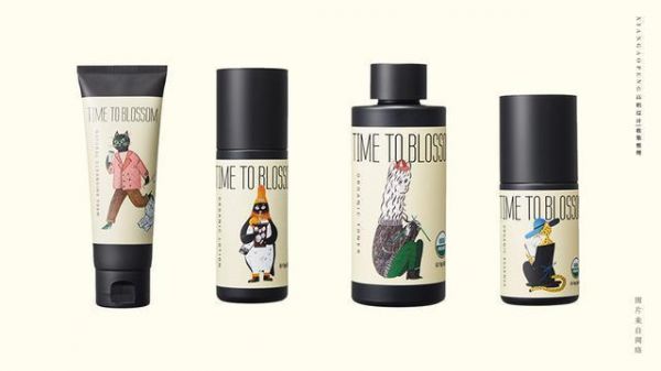 Crosspoint Design Studio设计团队为该化妆品包装创作了一组拟人化的动物插画形象,
