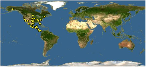分布于美国(阿拉巴马州、亚利桑那州、阿肯色、科罗拉多、佛罗里达、乔治亚州、路易斯安那州、密西西比州、密苏里州、新墨西哥州、北卡罗来纳州、俄克拉何马州、南卡罗来纳、田纳西、德克萨斯州、弗吉尼亚州)。 [2]