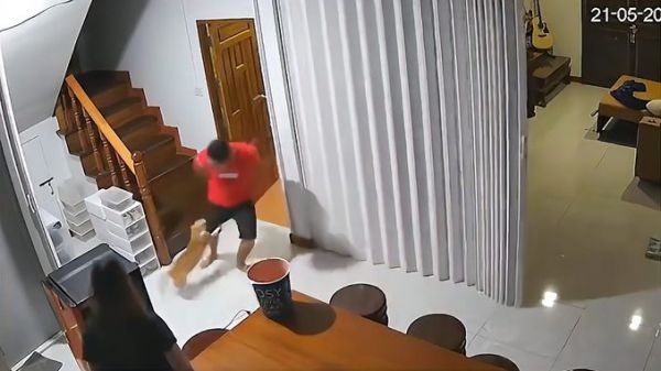 主人通过监控看狗 叫了好几遍都叫不醒 还以为狗子去了