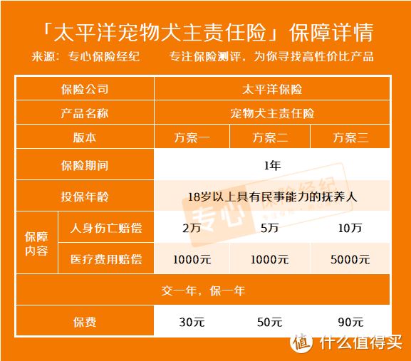太平洋宠物犬主责任险,只保宠物犬,宠物医疗费、人身伤亡都能赔,每次事故免赔额100元,价格也很便宜,性价比还是很高的。