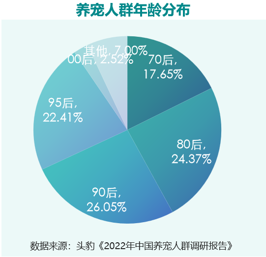 中国养宠家庭渗透率从2019年至2023年持续增长,2023年达到22%,与美国的70%和欧洲的46%相比,中国宠物市场仍有巨大的发展空间。