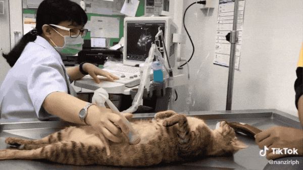 正常来说,猫咪带到医院做检查,医生们都是先“看诊+触诊”,从鼻尖到尾尖仔细地看,仔细地摸。