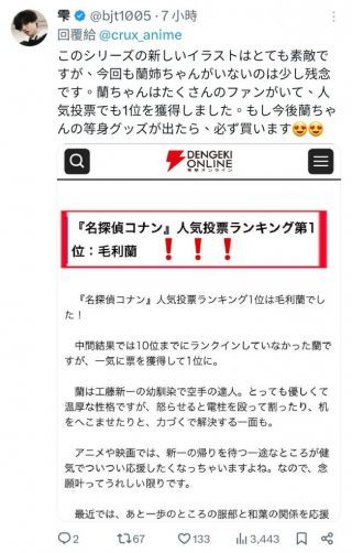 [角川人气投票]毛利兰靠粉丝刷票得第一,有图为证