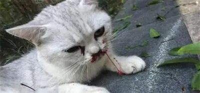 2、误吞尖锐异物划伤肠胃,导致猫咪吐血。