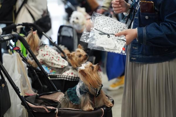 ↑这是4月1日在日本东京国际会展中心的东京国际宠物展上拍摄的宠物犬。