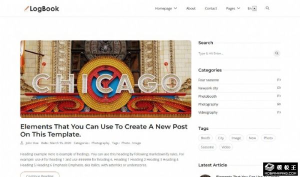 简洁纯文字日志动态网站模板 html Bootstrap3