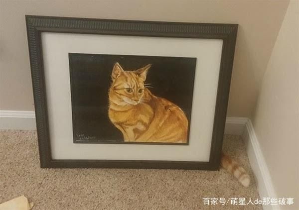 前面喵星人的伪装起码需要一个实体,而接下来的这只厉害了,竟然利用一副画!这小尾巴和画完美融合,人们不禁惊叹,画画的人心思太巧妙,这尾巴栩栩如生,几乎可以以假乱真!