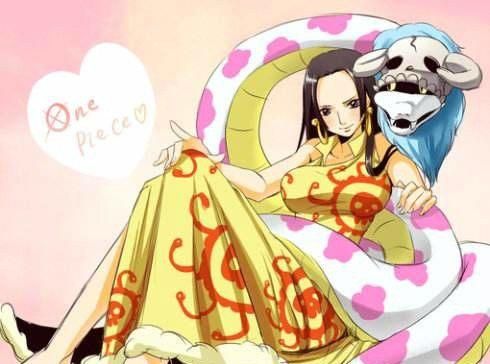 4 / 6 汉库克的宠物蟒蛇。女帝汉库克是九蛇海贼团领袖,同时也是王下七武海之一,曾经是天龙人的奴隶,后被泰格所救,而后成为亚马逊·百合的战斗民族九蛇的最高领导,长年与宠物蟒蛇萨洛梅在一起,虽然是蛇,但是萨洛梅没有毒性,主要承担椅子的角色。