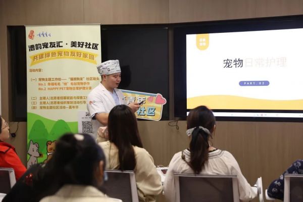活动邀请吾家宠物医院院长为爱宠青年们呈现了一场关于宠物日常护理的精彩讲座。院长以通俗易懂的方式,细致阐述了宠物饮食管理的要点、定期体检的必要性、日常清洁护理的技巧,以及如何有效预防和识别宠物的常见病症。现场无论是狗狗还是猫咪的主人,都聚精会神地倾听着,宠物们似乎也感受到了这份专注与关爱,表现得格外温顺。