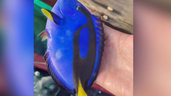 这属实是大意了!蓝吊鱼装死 放生后又奇迹般的“活过来”了