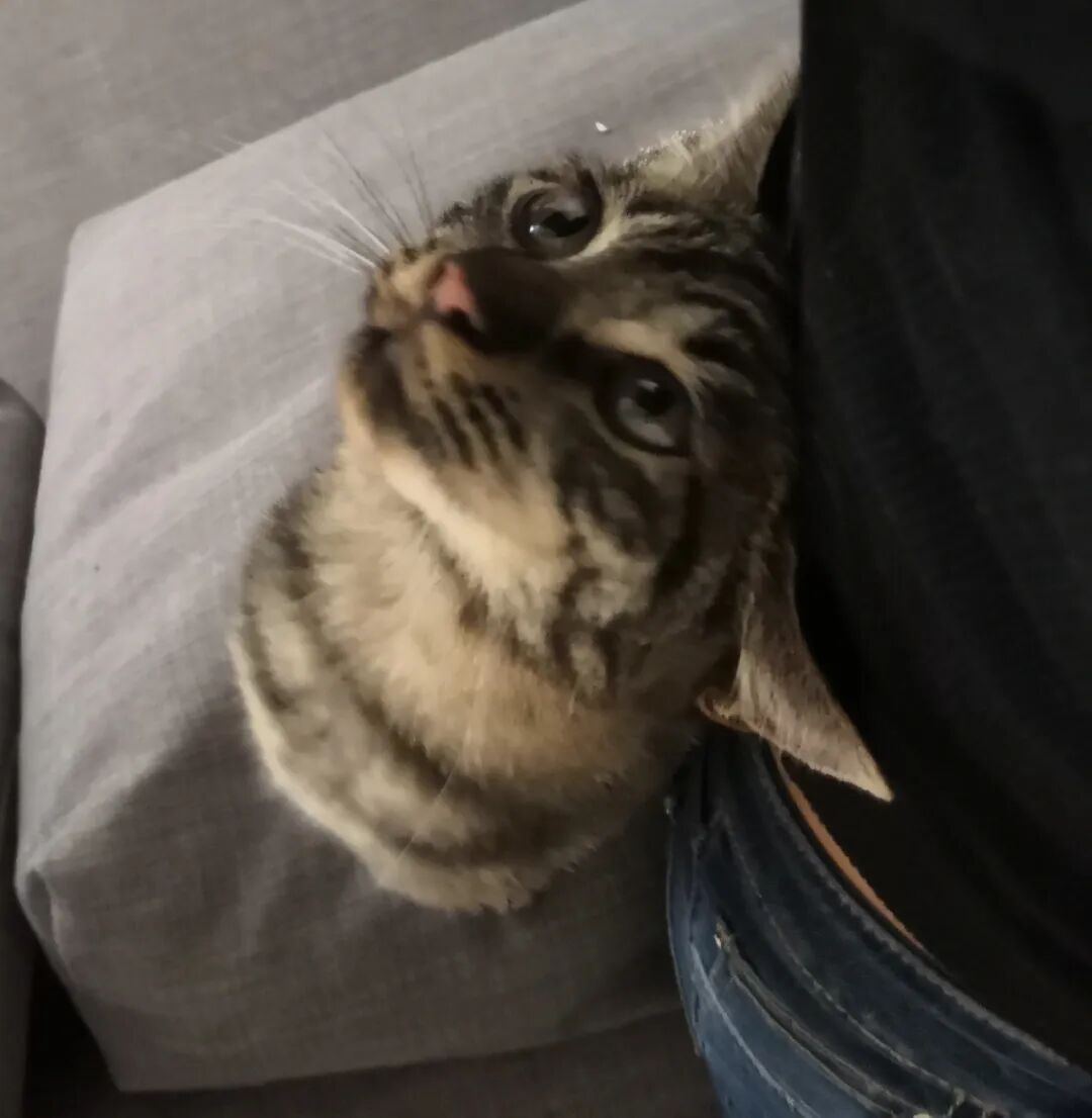 每次我去朋友家做客,Tiger都和我形影不离,走到哪跟到哪。有天中午吃完饭后,我坐在沙发上和朋友聊天,Tiger跳上沙发,在我身边躺下,依偎着我的大腿睡着了。Tiger对我毫无防备,我的心都化了,而朋友作为小猫真正的主人,似乎显得过于冷淡。渐渐地,我开始对Tiger的活泼黏人有了自己的解读——我的朋友养猫,却很少陪伴与照顾猫,只是在自己需要的时候用Tiger排遣寂寞,才导致Tiger如此孤独。