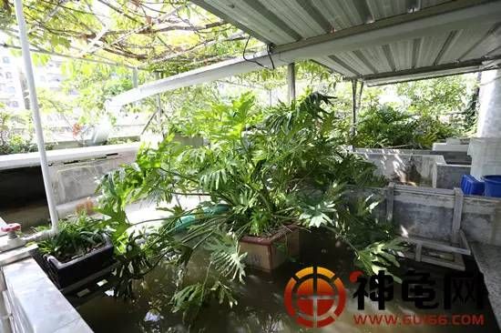 深圳市龟鳖养殖协会会长黄伟球的天台龟池种植了多种果树,一进入龟池神秘果、无花果等果树映入眼帘,全部都是龟最爱的水果,给龟提供舒适的仿生态环境,不时会有几个果子掉进龟池,成为龟龟的囊中物,相当有趣。