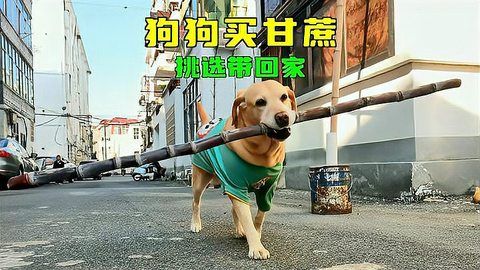 01:00狗狗买甘蔗也会精挑细选,5元1根很划算,买回家大吃特吃