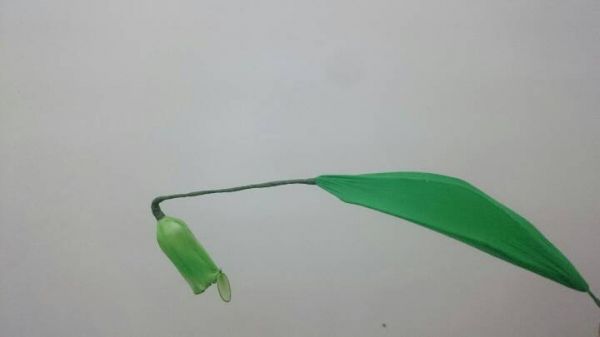 22#铁丝用裁整根铁丝一半的长度,一段端固定好花苞,网绿色丝网。