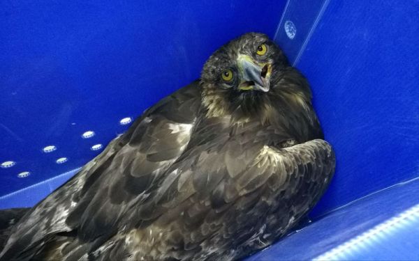2018年8月11日,北京猛禽救助中心从北京市密云区接收一只受伤的金雕。受访者供图