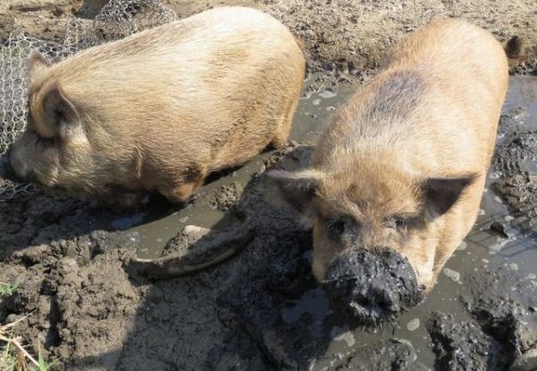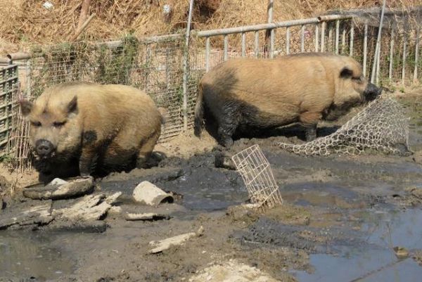 现在两只猪住的地方很大,也没有像狗场一样铺水泥地,还挖了小水池让它们尽情玩泥巴。姚女士说天热的时候,它们两会用泥浴来降温,而且身上的泥巴也可以防止蚊虫的叮咬。两只猪一直非常健康,没生过病。