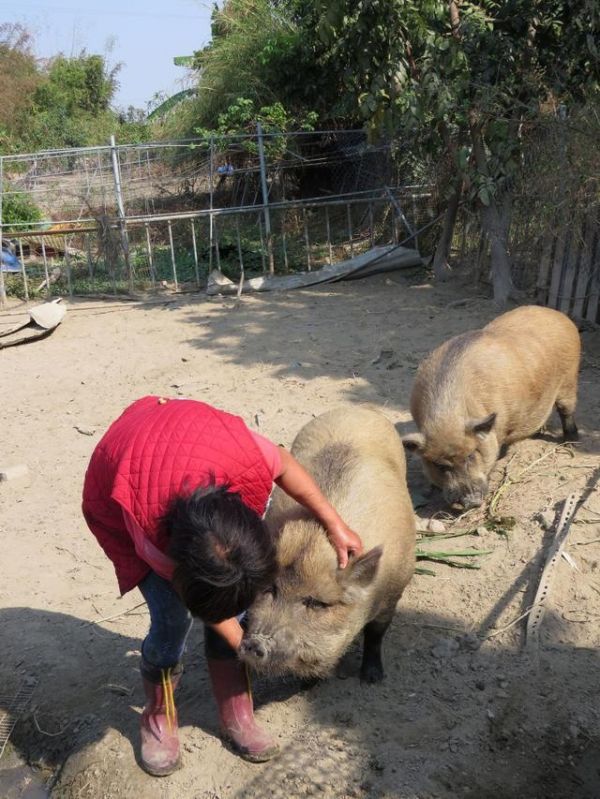 姚女士说两只猪真的非常聪明,有次要修补狗场的时候,请了人帮忙整地。强烈的震动和巨大的噪音,让两只猪又翻墙逃跑。姚女士知道它们不会走远,但就是不知道藏哪里了。等到改造完隔天早上,两只猪也乖乖回来了。