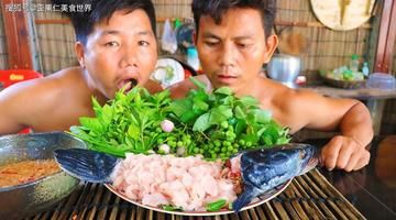 东南亚人是有多喜欢吃淡水鱼刺身的,捕捉1条大鱼直接...